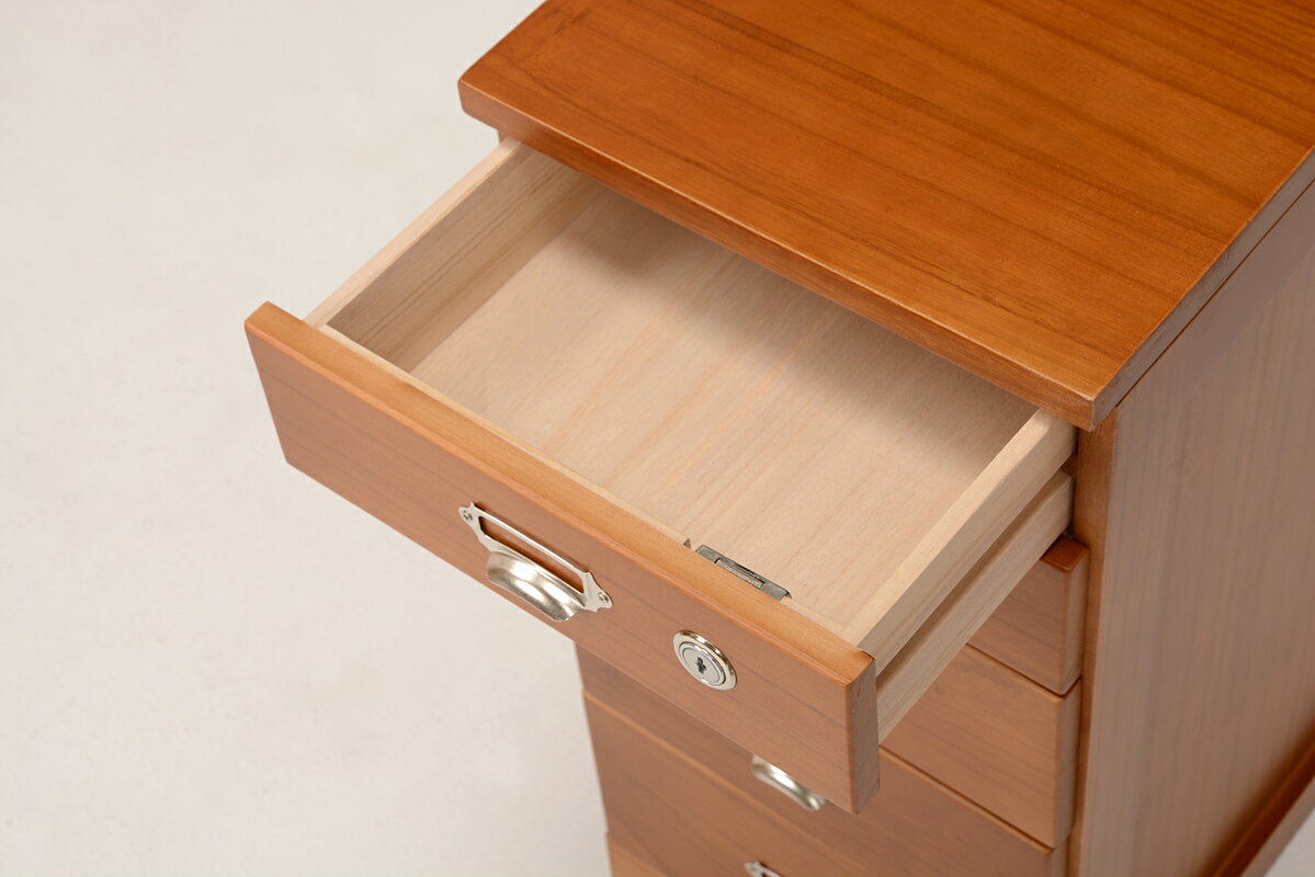【商品について】■商品サイズ(外寸)(約)幅28×奥行37×高さ83.5cm■補足説明・隠しキャスター付 ・鍵1箇所付 ・ネームプレート付取っ手 ・引出内寸(浅):約幅23×奥行32×深さ5cm ・引出内寸(中):約幅23×奥行32×深さ8cm ・引出内寸(深):約幅23×奥行32×深さ11cm■成分材質主材:桐材■その他この商品は1梱包でお届けします。